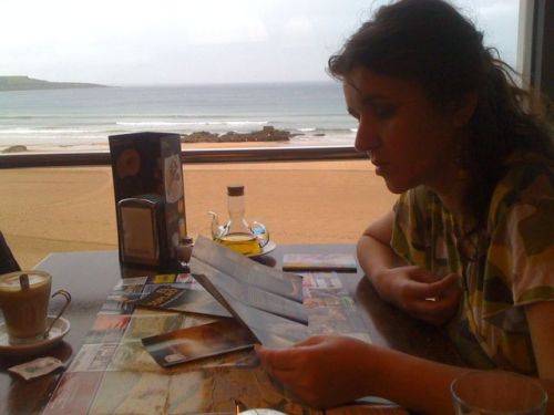 Sitzen seit Stunden im Restaurante Balneario de la concha, aber irgendwie passen in unsere Mägen keine Tortillas, Tostadas und andere kantabrische Leckerbissen Meer. Dauerregen am Atlantik und dabei hat meine Purpurhändlerin ihre schönsten Bademoden im Pilgergepäck…. .
