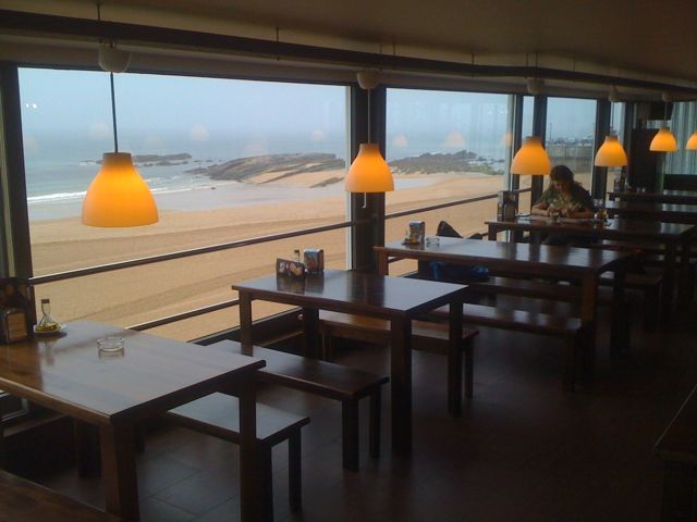 Sitzen seit Stunden im Restaurante Balneario de la concha, aber irgendwie passen in unsere Mägen keine Tortillas, Tostadas und andere kantabrische Leckerbissen Meer. Dauerregen am Atlantik und dabei hat meine Purpurhändlerin ihre schönsten Bademoden im Pilgergepäck…. .