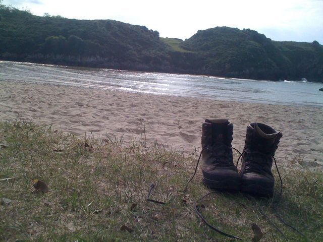 Der Küstenweg nach Llanes wurde für mich zu einer wunderschönen und einsamen Veranstaltung. Wie ich später erfuhr, wurden die anderen Pilger am frühen Morgen in den umliegenden Herbergen ausdrücklich davor gewarnt, den Küstenweg zu gehen, da angeblich eine unumgängliche Brücke auf der Strecke durch das Unwetter zerstört worden sei. Habe diese Warnung als Hotelpilger auf Zeit! nicht erhalten, bin jedoch völlig unerschrocken über die in Frage stehende Holzbrücke