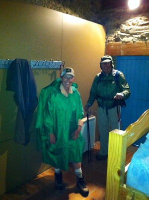 So freuen sich beispielsweise zwei kalifornische Pilger hinaus in den Regen gen Arzua zu dürfen. Sonne haben sie Zuhause ja genug. Ich hingegen bleib noch ein wenig im Stall liegen. Vielleicht hört der Regen ja auf?