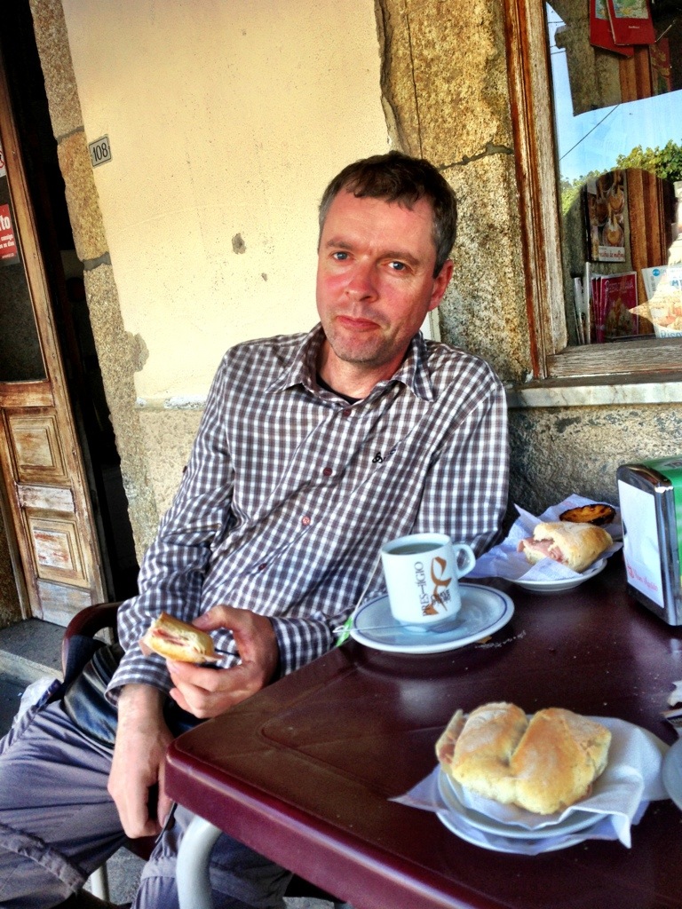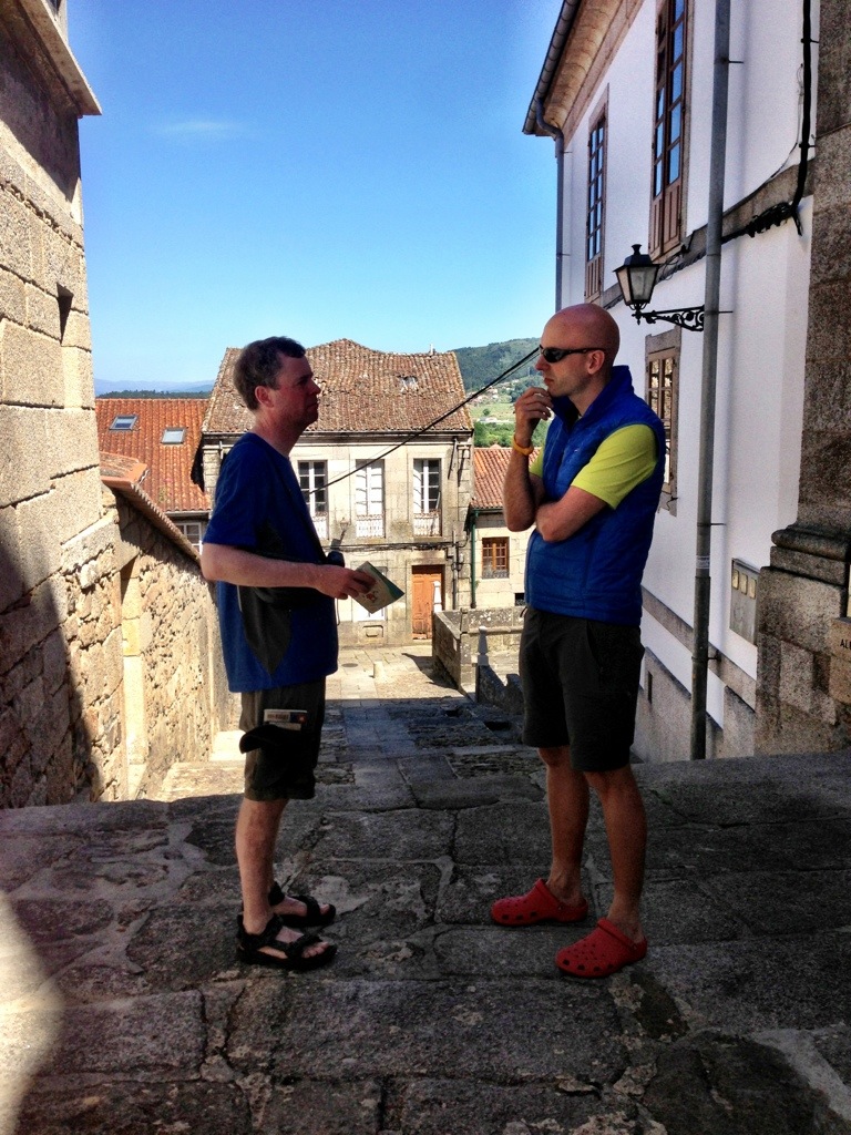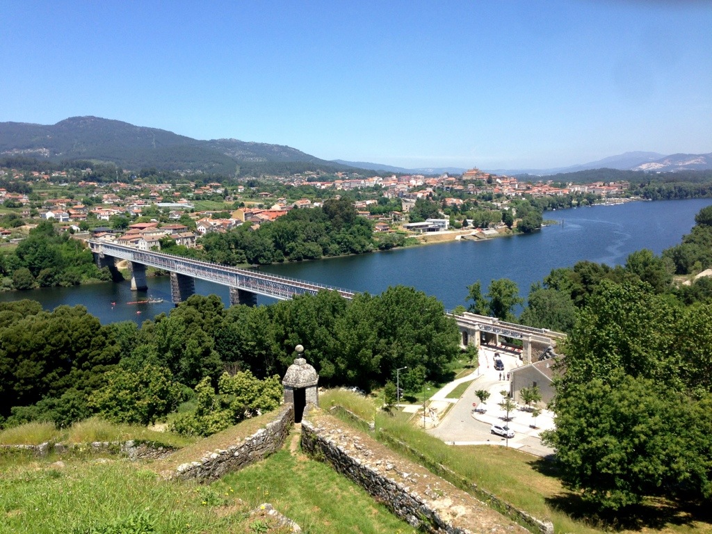 Kulinarischer Höhepunkt der heutigen Wanderung war das Menue des Tages in der Churrasqueira Valenciana in Valença. Portuguisischer Fisch (Bacalao) mit Gemüse, Kartoffeln und einer köstlichen Sauce zubereitet, dazu gab es einen knackigen Salat, frische Backwaren, eine schmackhafte Gemüsesuppe und ein leckeres portuguisisches Bier für unglaubliche 6,00€ je Nase. Ein Lokal fernab der Touristenströme in dem jeder Gast wie ein König behandelt wird und das von jedem Pilger besucht werden sollte. Nach dem Essen entschlossen wir uns entgegen unserer eigentlichen Planung Valença und Portugal heute doch noch zu verlassen und überschritten die Landesgrenze nach Spanien und erreichten unmittelbar die auf spanischer Seite gelegene Grenzstadt Tui. Até Logo, Portugual. Obrigado!
