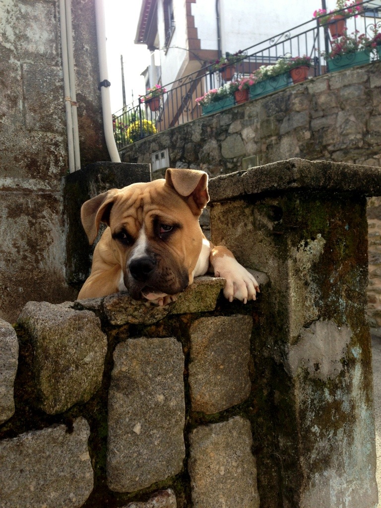 An diesem Foto, also diesem Hund, der über die Mauer schaut und so einen wunderbar unschuldigen Eindruck vermittelt, kann ich mich nicht satt sehen.