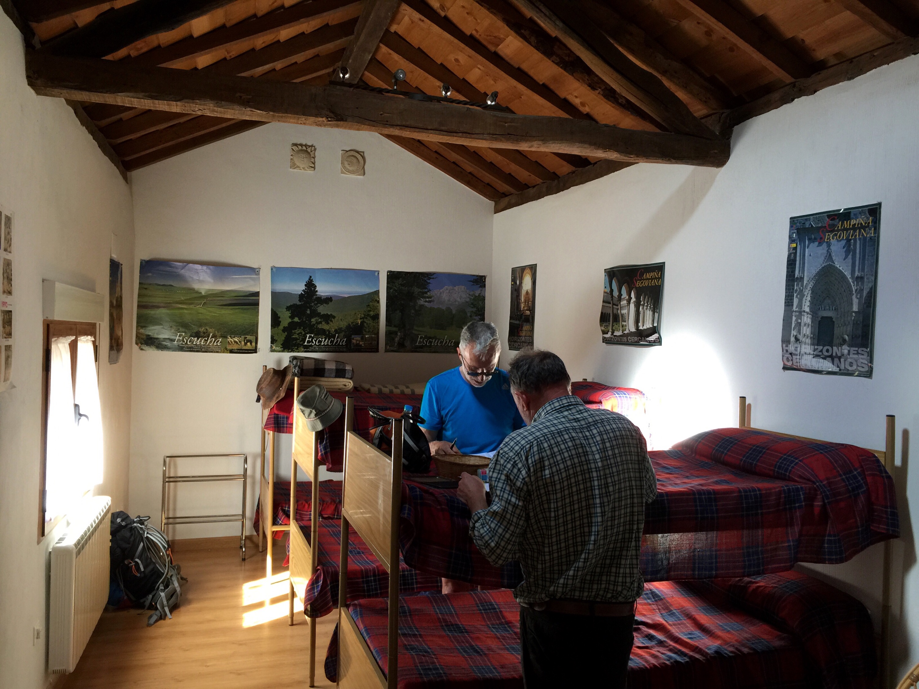 Da waren es schon mal Vier! Frei nach diesem Motto sind vier der sechs Betten in der schnuckeligen Herberge von Santa Maria la Real de Nieva belegt. In den Kojen liegen Jos aus Belgien, Kamil aus Polen und Maureen, 56 jährige Australierin aus Sydney mit irisch/indischen Wurzeln! Ich habe mich in die Küche der Herberge zurückgezogen um diese Zeilen noch schreiben zu können. Am Abend habe ich nach dem tollen Essen (Twitter: https://twitter.com/caminopilger/status/604728573249888256 ) Marc-Andre ter Stegen im TV zugeschaut, wie dieser den spanischen Pokal gewann und nun kurz vor Mitternacht fülle ich mein virtuelles Pilgertagebuch mit weiterem Leben. Es war heute sehr sehr schön Jos an meiner Seite gehabt zu haben. Quatschen, laufen, lachen und stöhnen – Mann tat das gut. Der pensionierte 67-Jährige ist so was von fit. Unglaublich! In seinem Sog wurden meine Beine schneller als vermutet und so darf ich sagen, dass die erneut mega abwechslungsreiche Etappe mit 34 Kilometern und 11 Stunden ( 2 Std. Pause inbegriffen) zwar tierisch lang war, mich jedoch nicht so sehr schaffte wie der Ritt über die beschneiten Berge. Und der Hagelschauer blieb heute auch aus. Morgen am Sonntag werden wir ein wenig später aus den Federn steigen können. Die 22 km nach Coca kommen mir ganz gelegen um meinem Körper zumindest ein wenig Entlastung zu besorgen. Wie auch immer Mann es sagen will, ich bin im Moment mit mir und meiner kleinen Pilgerwelt sehr zufrieden. Schaun mer mal …DC