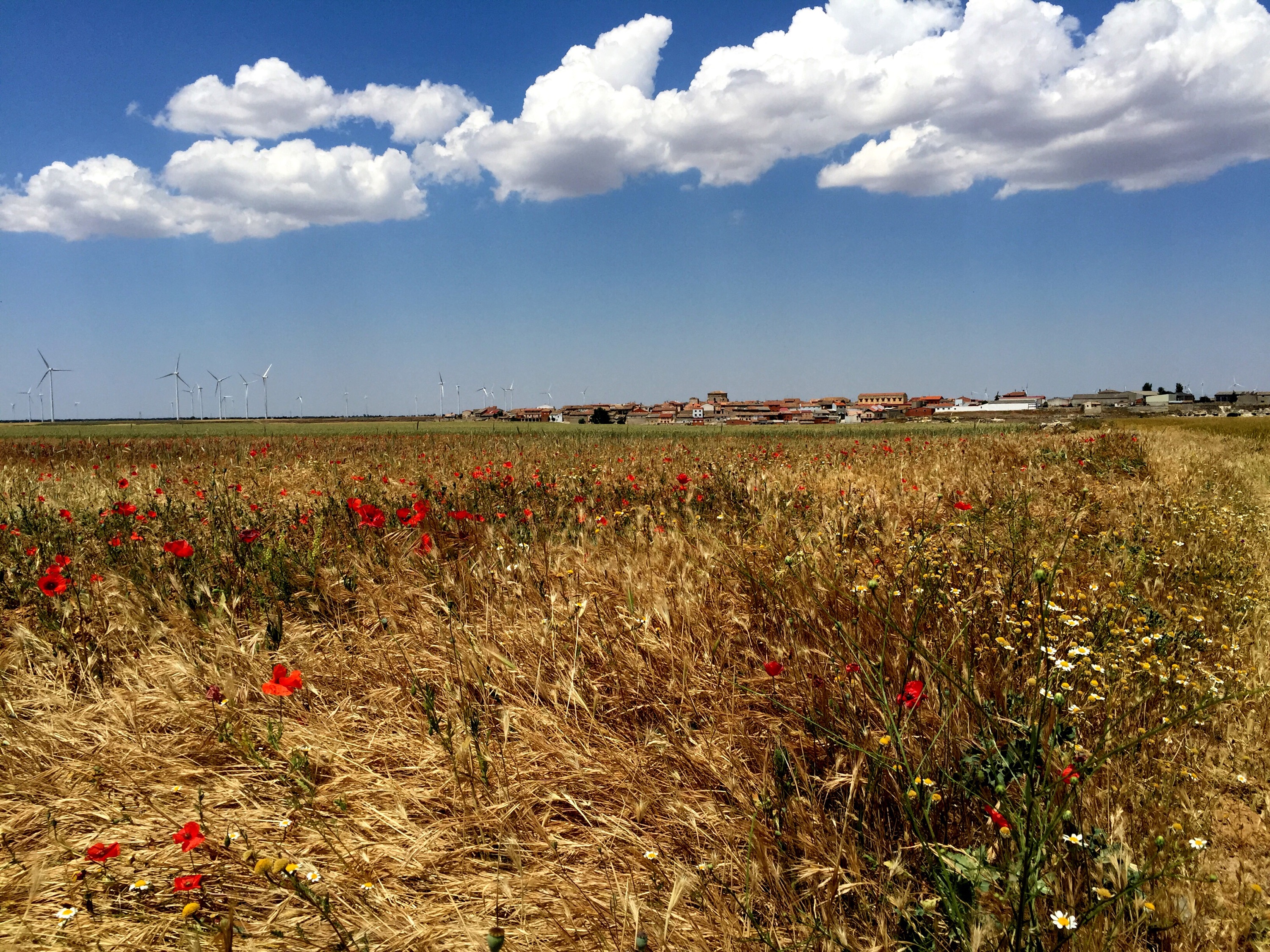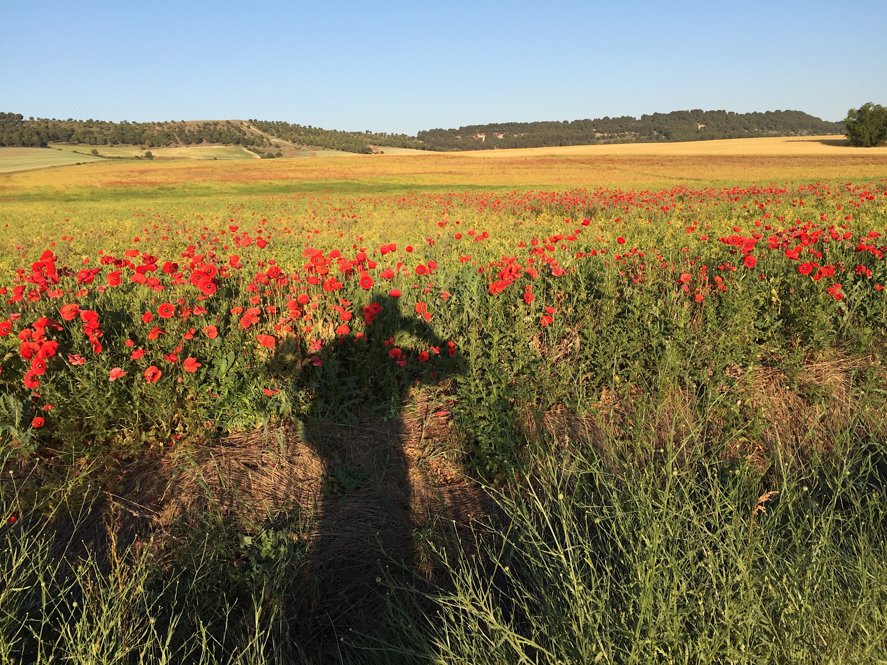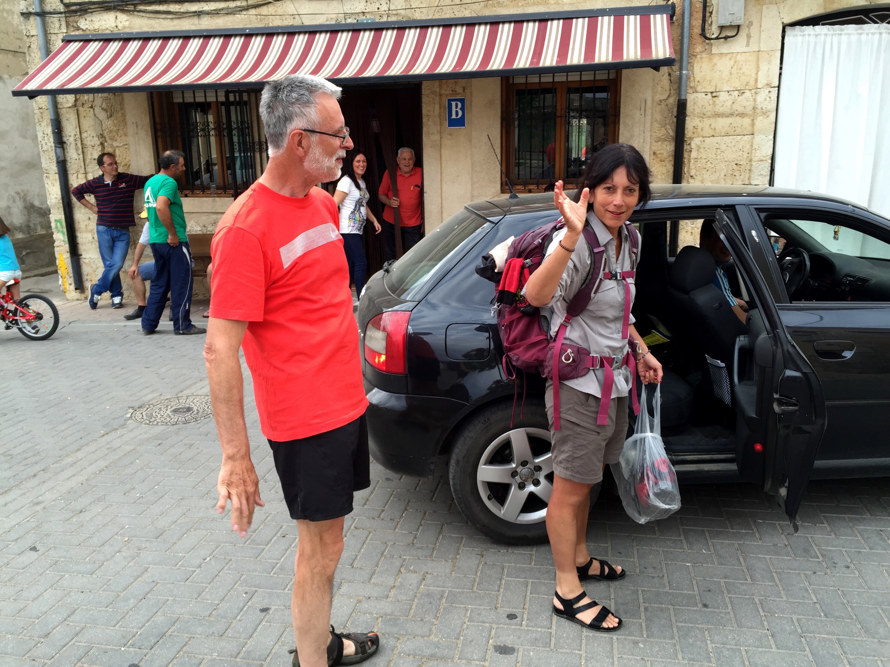 Den angestaubten Zielort Perñaflor de Hornija erreichte ich bei einer Bullenhitze gegen 13:30 Uhr und besorgte mir im Ort die Schlüssel für die Herberge. Vor dem Sprung unter die erfrischende Dusche vernahm ich ein lautes Klopfen an der Außentür und öffnete diese. Ich erschrak ein wenig als ich SIE, Maureen, vor der Türe sah. Sie sah ein wenig aus, wie ein klappriges Gespenst, was wohl auf den Umstand zurückzuführen ist, dass ihren Erzählungen zufolge der zum späten Frühstück von Ihr verspeiste geräucherte Lachs wohl nicht mehr taufrisch war. Jos war um diese Zeit noch nicht mit im Gepäck. Der geduldige Belgier turnt immer noch in der Hitze herum… Die von ihm betreute Maureen hatte sich kurzerhand nach dem 2ten Stop ein Taxi zur Albergue gerufen!  Hape Kerkeling  lässt grüßen! Aber mir gestern unterstellen, dass ich mit dem Bus gefahren wäre… . Was erlauben Australien?