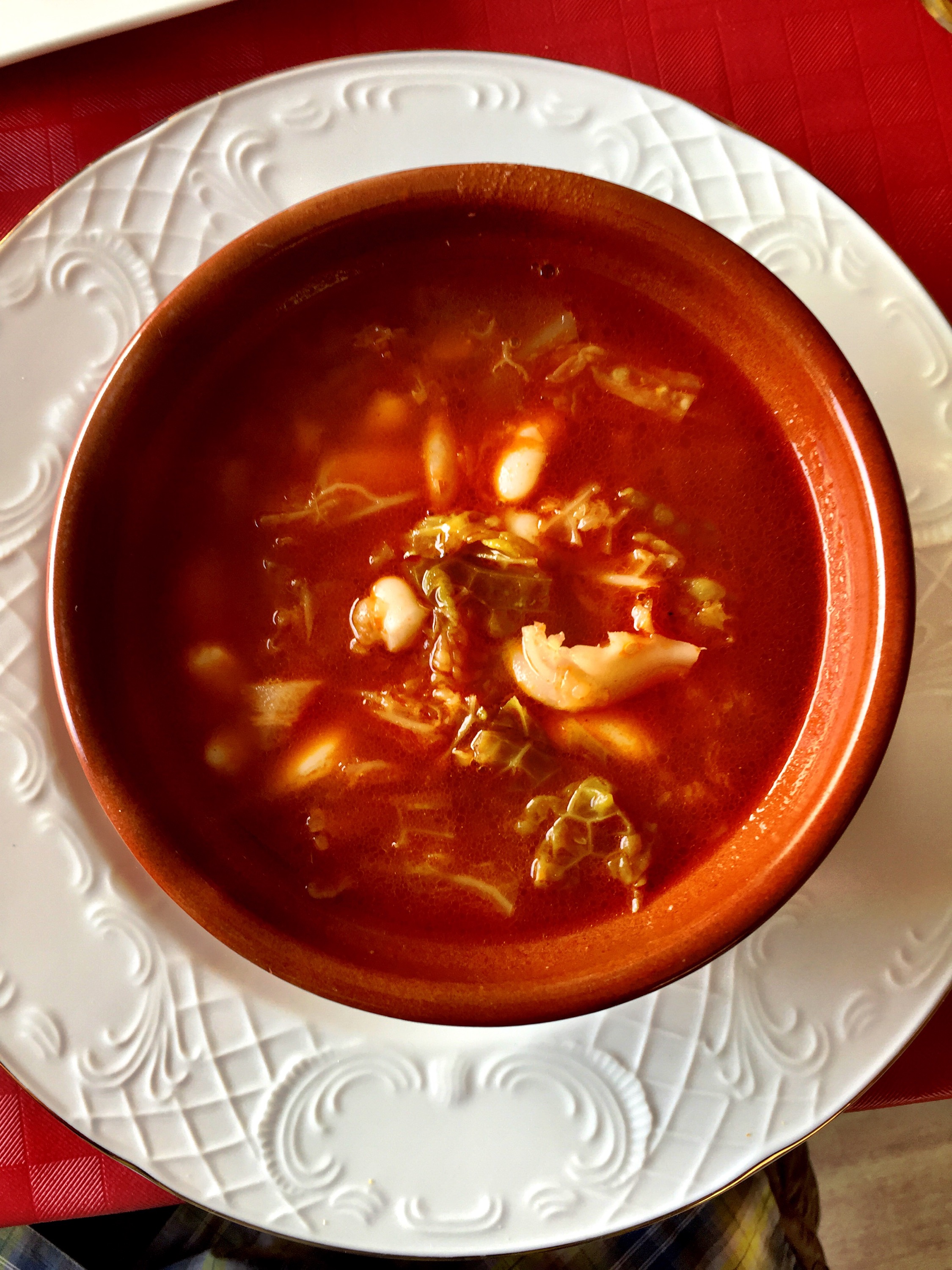 anschließend galicische Wirsingsuppe mit weißen Bohnen