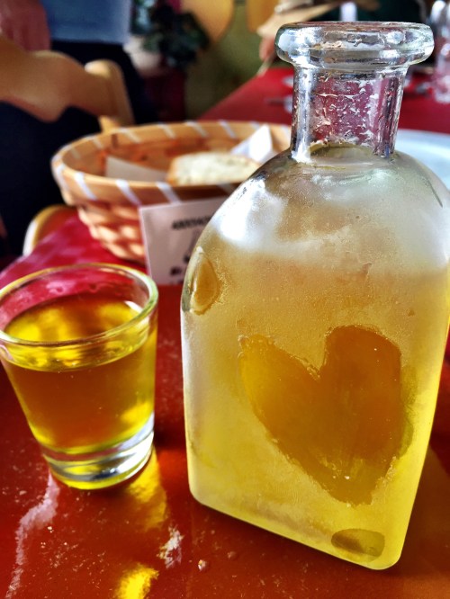 begleitet von einem Espresso und einem Orujo (Orujo de Galicia ist ein Schnaps mit großem Charakter sowie intensivem, delikatem und harmonischem Aroma, der tief in der galicischen Kultur und Folklore verwurzelt ist)