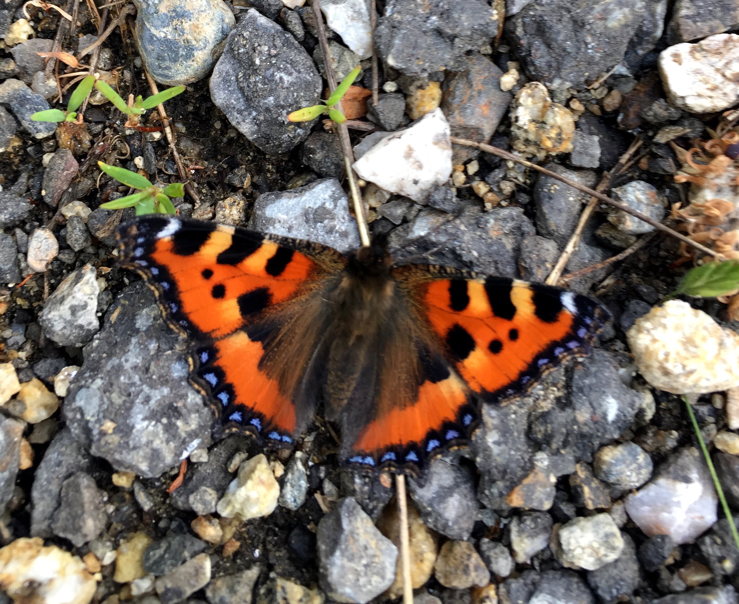 der lustige Stein erinnert mich an einen Schneemann, Friedhof mit Ausblick! und dazu viele bunte Schmetterlinge…schöner Weg was will Mann Meer?