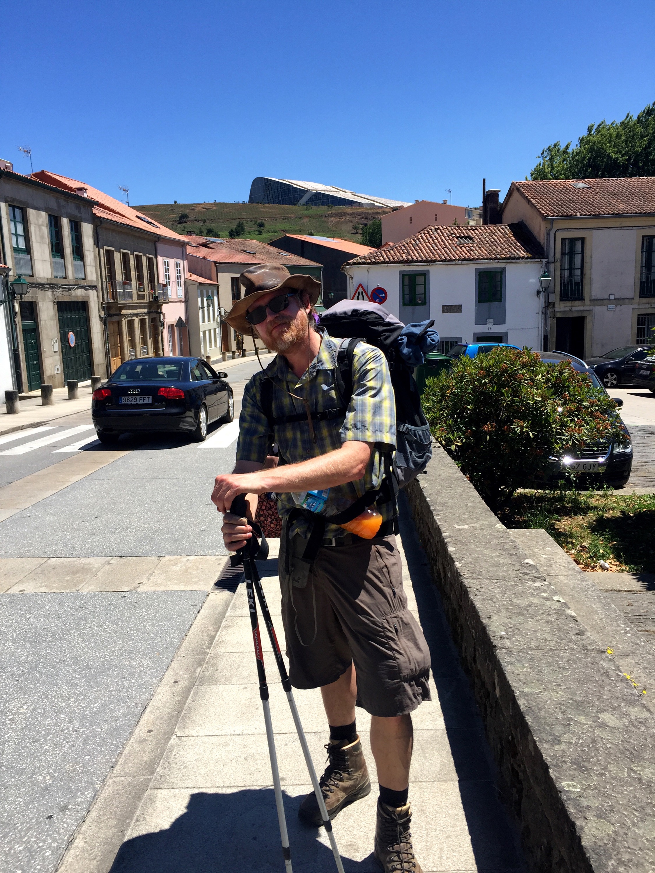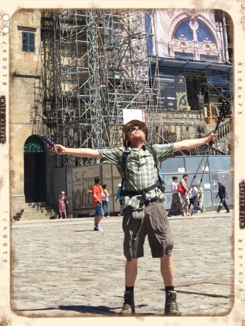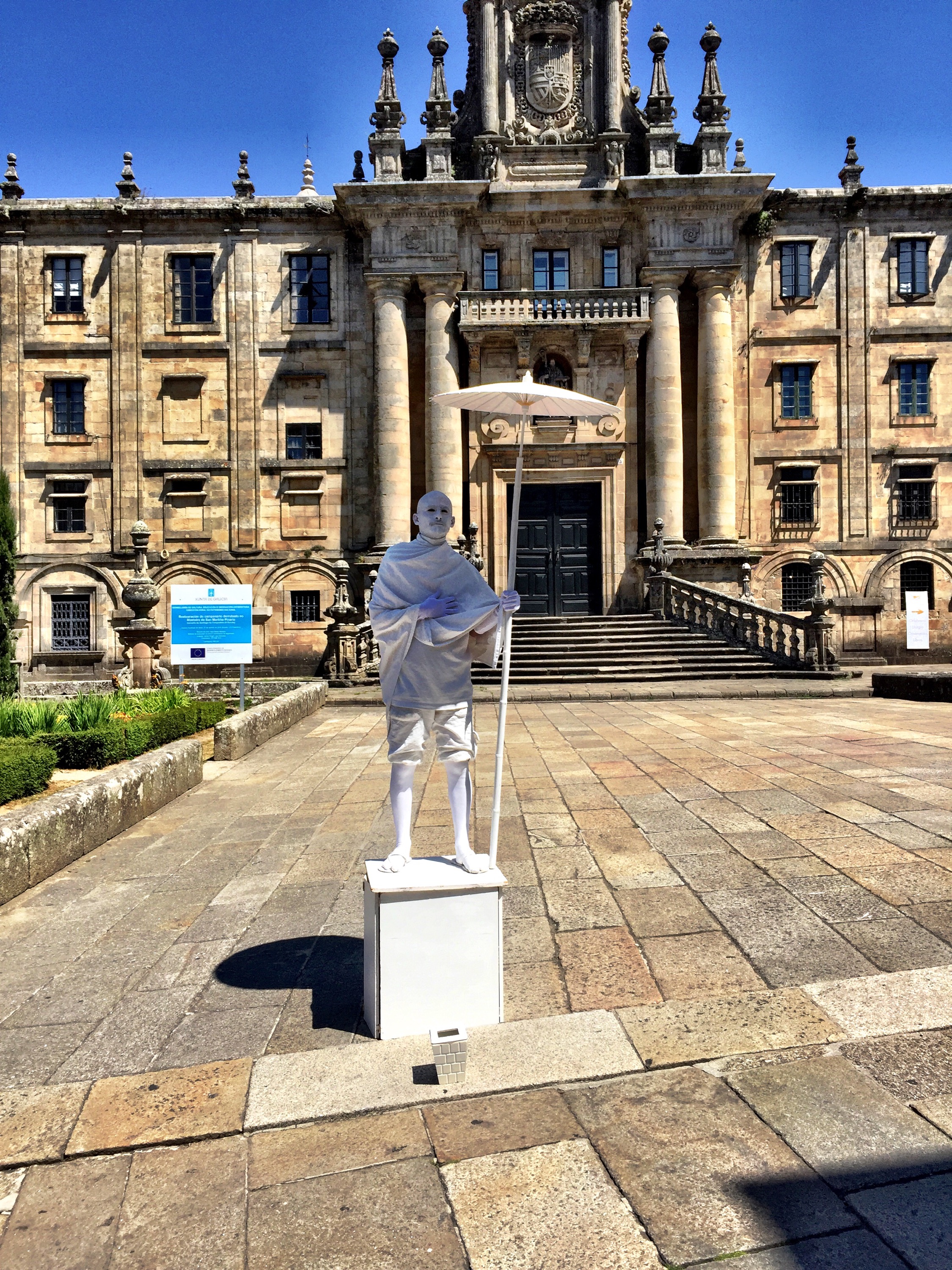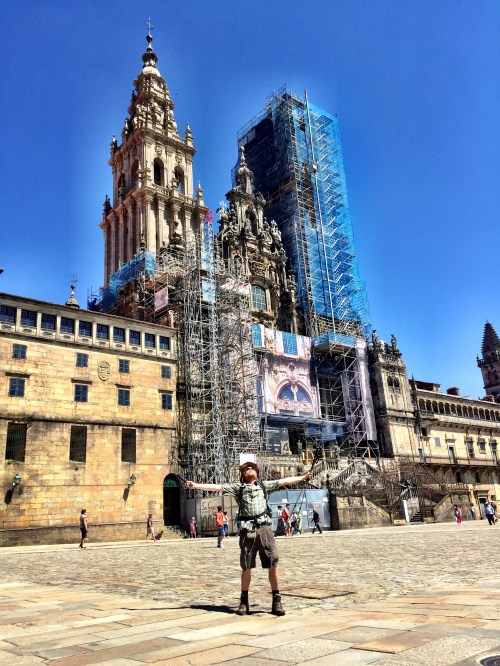 Ein Großteil der Frontseite der Kathedrale war restaurationsbedingt mit schwerem Baugerüst und wehenden Tüchern versehen. Hatte ich in den Vorjahren noch „Stunden“ damit verbracht, die Kathedrale fototechnisch ins richtige Licht zu rücken, genügten gestern 3-4 Schnappschüsse. Fertig! Um nicht den falschen Eindruck aufkommen zu lassen, möchte ich sagen dürfen, dass ich im Moment meiner Ankunft schon große Freude, Glück und auch Erleichterung verspürte. Ich war körperlich geschafft, kam zu einer Uhrzeit in die Stadt, als die anderen, morgens angekommenen, Pilger längst ihre Stiefel ausgezogen hatten. Unspektakulär verlief dann, passend zu meiner Ankunft, auch der weitere Tag und der Abend. Mit wem hätte ich meine Ankunft auch feiern können? Ich entschied mich kurzerhand, das Feiern auf den heutigen Abend, nach Porto zu verlegen, denn da wartet mein Liebesglück namens Lydia