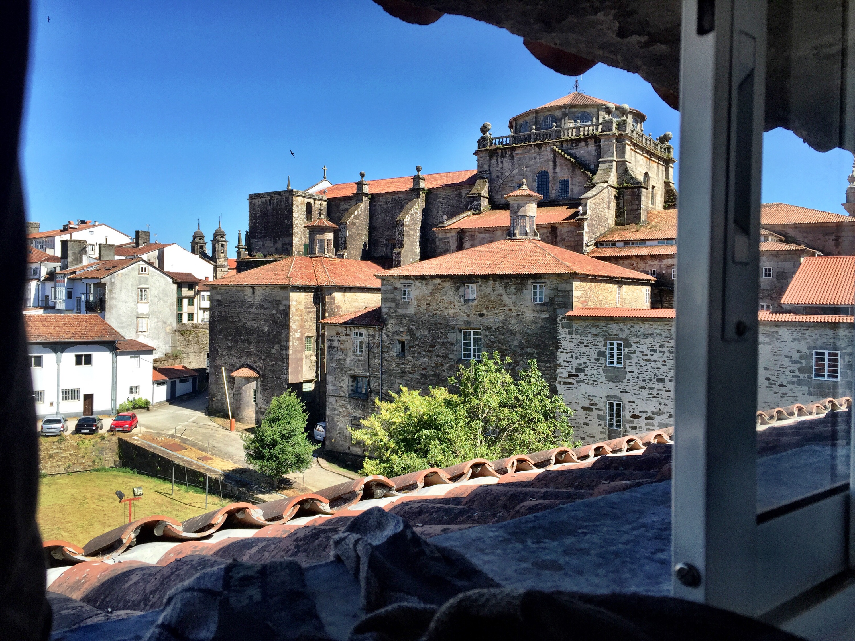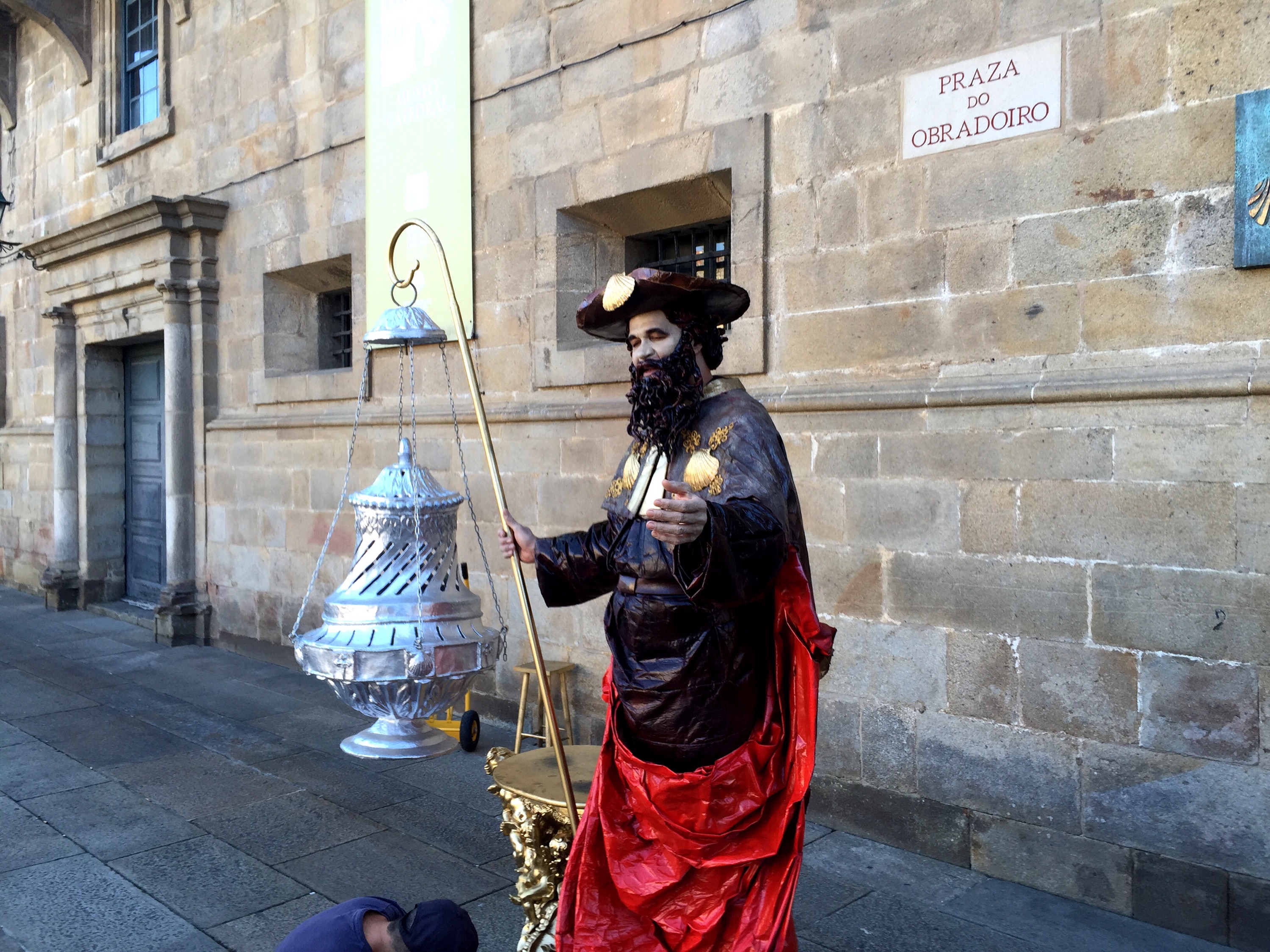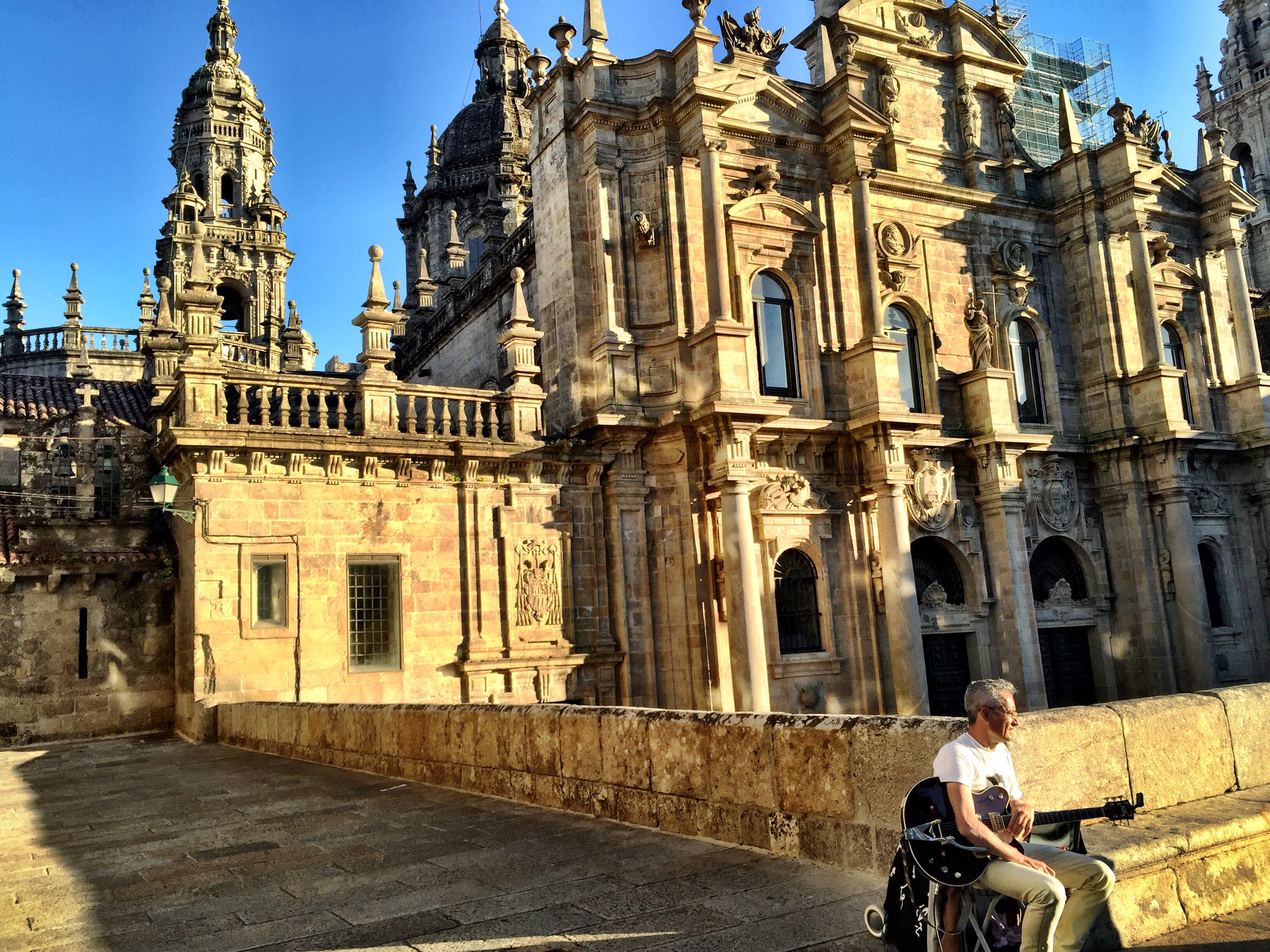 Ein Großteil der Frontseite der Kathedrale war restaurationsbedingt mit schwerem Baugerüst und wehenden Tüchern versehen. Hatte ich in den Vorjahren noch „Stunden“ damit verbracht, die Kathedrale fototechnisch ins richtige Licht zu rücken, genügten gestern 3-4 Schnappschüsse. Fertig! Um nicht den falschen Eindruck aufkommen zu lassen, möchte ich sagen dürfen, dass ich im Moment meiner Ankunft schon große Freude, Glück und auch Erleichterung verspürte. Ich war körperlich geschafft, kam zu einer Uhrzeit in die Stadt, als die anderen, morgens angekommenen, Pilger längst ihre Stiefel ausgezogen hatten. Unspektakulär verlief dann, passend zu meiner Ankunft, auch der weitere Tag und der Abend. Mit wem hätte ich meine Ankunft auch feiern können? Ich entschied mich kurzerhand, das Feiern auf den heutigen Abend, nach Porto zu verlegen, denn da wartet mein Liebesglück namens Lydia