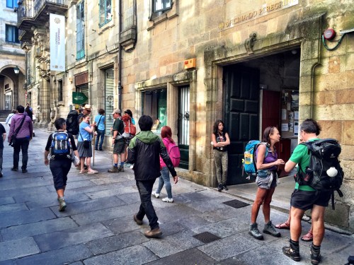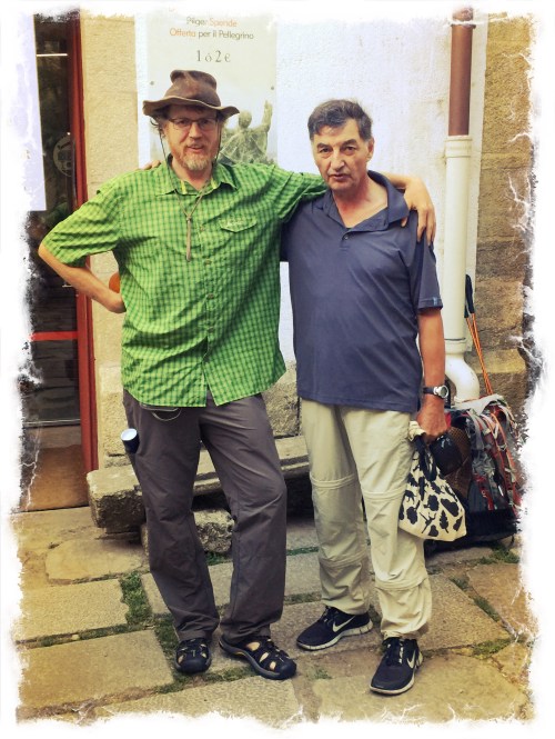 Happy end am frühen Morgen. Ich traf meinen Camino-Retter Johann aus Salzburg am Pilgerbüro.