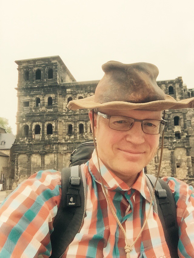 Um ein Haar hätte es diesen Pilgertag im Trierer Land heute nicht gegeben, da ich bei meiner gestrigen Anreise von Mönchengladbach nach Trier gegen 18:00 mit der Deutschen Bahn in Koblenz hängen geblieben bin. Unwetter an Rhein und Mosel hatten einen Erdrutsch zur Folge und damit war die Bahnstrecke Koblenz/Trier kurzerhand in beiden Richtungen für den Abend gesperrt. Mein Drang, diesen 3 Länder Camino unbedingt am heutigen Tag starten zu wollen, war offensichtlich so groß, dass das Schicksal mir kurzfristig eine rar gesäte  PKW Mitfahrgelegenheit gegen 19:00 Uhr vom Koblenzer HBF schenkte und ich Trier noch am Abend erreichte.  Euphorisiert von diesem glücklichen Ereignis startete ich gegen 9:30 heute sehr spät von der Porta Nigra in meinen 2016er 1wöchigen „Kurz-Camino“.