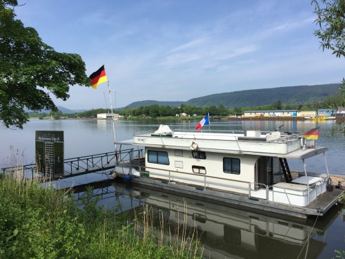 Einmal aus Trier herausgewandert, war die Mosel für lange Zeit mein Begleiter auf dem Weg nach Merzkirchen. Für meinen Geschmack lief ich den Tag über zu lange Strecken auf Asphalt, beispielweise auf dem ellenlangen Radweg entlang der Mosel, und vermisste bei all den Baustellen hier und da auch eine bessere Wegkennzeichnung.  Nachdem Blitz  Donner und heftige Regenfälle  mich spät am Nachmittag doch noch erwischten, war ich heilfroh Marys Destille/Pilgerherberge  in Merzkirchen gegen 17:30 Uhr erreicht zu haben.