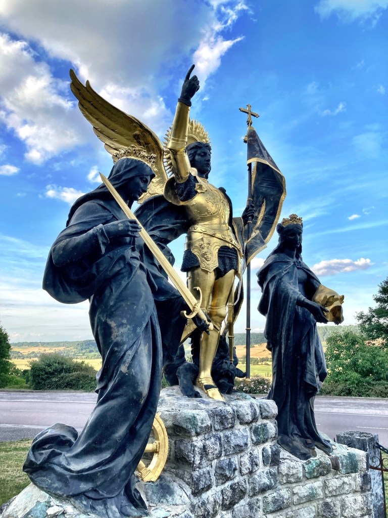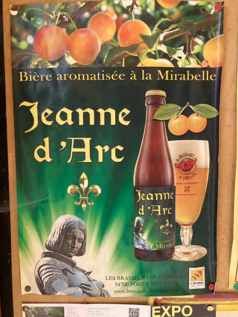 Zu Beginn darf ich ehrlich zugegeben, dass ich die „Heilige Johanna“ wohl niemals im Leben ohne den 1981 von der britischen Band Orchestral Manoeuvres in the Dark (OMD) veröffentlichten Hit „Joan of Arc“ so verinnerlicht hätte. Seit den goldenen 80ern ist mir Jeanne D’Arc also ein Begriff und heute durfte ich ihren Geburtsort Domrémy-la-Pucelle (Tagesziel) näher kennenlernen. Ohne Johanne läuft hier nix! Sie ist Namensgeberin für so vieles im Ort vom Restaurant bis hin zum mit Mirabellenkonzentrat aromatisierten Bier. Santé!