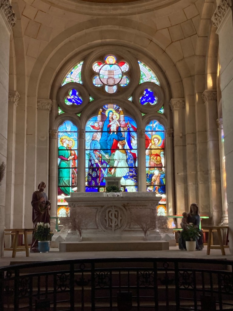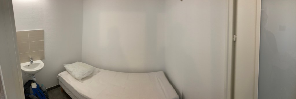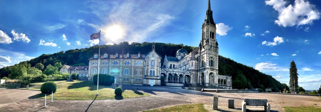 Übernachten werde ich heute in der Basilique Sainte Jeanne d‘Arc (wie soll sie auch anders heißen) und freue mich sehr endlich wieder eine „echte“ Pilgererfahrung auf meinem Pilgerweg machen zu dürfen. In einem Seitenflügel der bezaubernden Basilika befindet sich eine funkelnagelneu ausgestattete Wohneinheit mit 2 Einzelräumen zum übernachten von jeweils 2,20 x 2,00 Meter Größe. Nahezu luxuriös, wenn ich an so manche Massen-Pilgerherberge in Spanien denke. Bin natürlich allein in der Basilique. Die Einsamkeit des Pilgers auf dem „Chemin des Allemandes“ scheint sich diesbezüglich für mich leider fortzusetzen. Nullkommanull Fuß- bzw. auch Radpilger auch am dritten Tag.