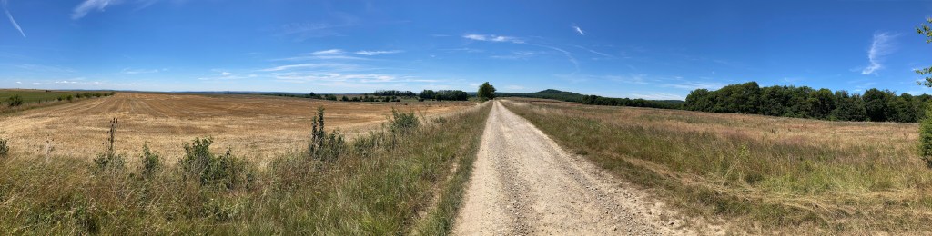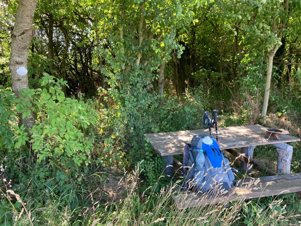 Wie an anderer Stelle schon angedeutet, bin ich in hier im „Grand Est“ Frankreichs ja leider häufig auf eine Hotelbuchung angewiesen, da es keine Herbergen gibt. Übernachtungen im „Hape Kerkeling Style“ führen zu einer gewissen Disziplinlosigkeit und erheblichen zeitlichen Verzögerung im Hinblick auf die Wiederaufnahme der täglichen Pilgeraktivität. In den staatlichen Herbergen Spaniens und Frankreichs geht das Licht im Regelfall um 22:00 Uhr aus, man schläft mehr oder weniger 😉 und morgens fängt das hektische Zusammenpacken ab spätestens 06:00 Uhr an. Im Hotel bleibt das Licht abends länger an und morgens genehmigt man sich gerne noch die zweite Tasse „cafe au lait“ im Bistro, lässt sich neben dem Baguette auch ganz gerne das süße Croissant vom Buffet schmecken. Ganz „verwundert“ bin ich dann immer über den Umstand, es wieder nicht vor 09:00 Uhr auf den Weg geschafft zu haben. Hier muss sich etwas Grundlegendes ändern und ich verordne mir hiermit ein Stück Pilgerdisziplin. Basta, ich habe gesprochen! Wie bitteschön anders soll ich denn sonst die nächsten Tage im französischen Glutofen überstehen? Die nachmittäglichen Stunden auf dem Chemin sind temperaturbedingt einfach so sehr anstrengend.
