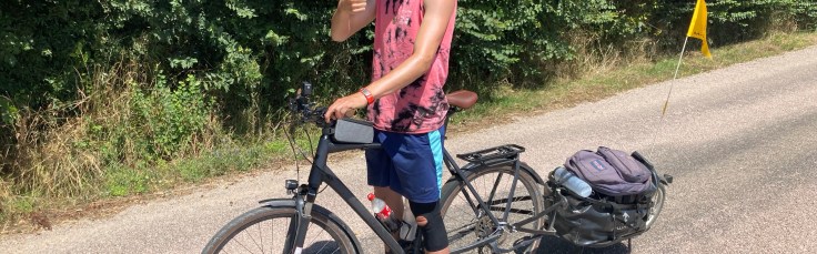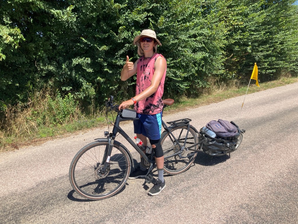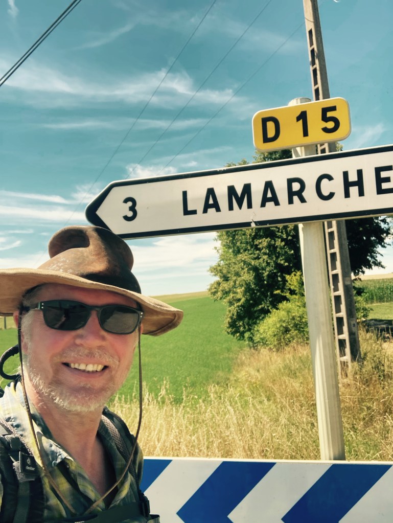 Dienstag, 12. Juli 2022, 12:45 Uhr Ostvogesische Pampa auf Höhe von Marey: Nach über 125 gelaufenen Kilometern auf dem Weg sehe ich beim turnusmäßigen Umschauen endlich den ersten Mitpilger in meinem Rücken. In freudiger Erwartung diesen Menschen kennenlernen zu dürfen bin ich fast schon euphorisiert. Was die Einsamkeit auf so vielen Kilometern doch für Dinge mit mir veranstaltet! Naja, der noch unbekannte Pilger sollte mich schon bald eingeholt haben, schließlich sitzt er auf nem Fahrrad. Fast schon bizarr diese Freude über einen Fahrradfahrer! Haben wir Fußpilger auf früheren Wegen die Biker nicht vielmehr gemieden wie die Pest, da sie uns zu oft im lockeren Vorbeifahren das letzte Bett in der Herberge wegschnappten? Die diesbezüglichen Wunden der Pilger-Vergangenheit sind heute vergessen. Schließlich will ich endlich meiner Erzähllust frönen, meine Pilgererlebnisse teilen, oder auch dem Fahrradpilger meinen „Alter Ego“ Herrn Innenmeniskus vorstellen. Endlich hat der Unbekannte mich eingeholt, hält sein Fahrrad samt Anhänger an und fängt das Gespräch mit mir an. „Hi I am Eugenio from Mexico-City.“ Hammer, so ein super sympathischer junger Pilger aus Mexico! Was soll ich ihm zuerst erzählen? Etwas über die lang zurückliegende Reise meiner geliebten Ehefrau in sein Heimatland, mexikanische Fußballspieler in der Fußball-Bundesliga oder doch eher das Pilgern als Thema sofort in den Vordergrund stellen. Ich möchte den chillig daherkommenden jungen Kerl nicht all zu sehr mit meinem Caminopilger-Geschwafel überfrachten und frage ihn ganz einfach, bis wohin er denn fahren möchte. Wie aus der Pistole geschossen kommt von ihm als Antwort: „Barcelona“! Ich versuche mir in Sekunden vorzustellen, welche Jakobswege denn da auf dem Weg nach Katalonien befahren werden müssen. Naiv schlage ich ihm vor, doch eher die Jakobswege zum Camino Norte (de la Costa) und Santiago de Compostela als „Fernziel“ in seine Überlegungen mit einzubeziehen.
