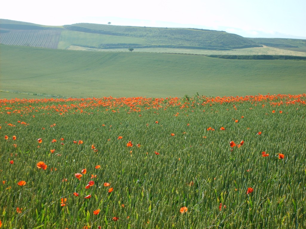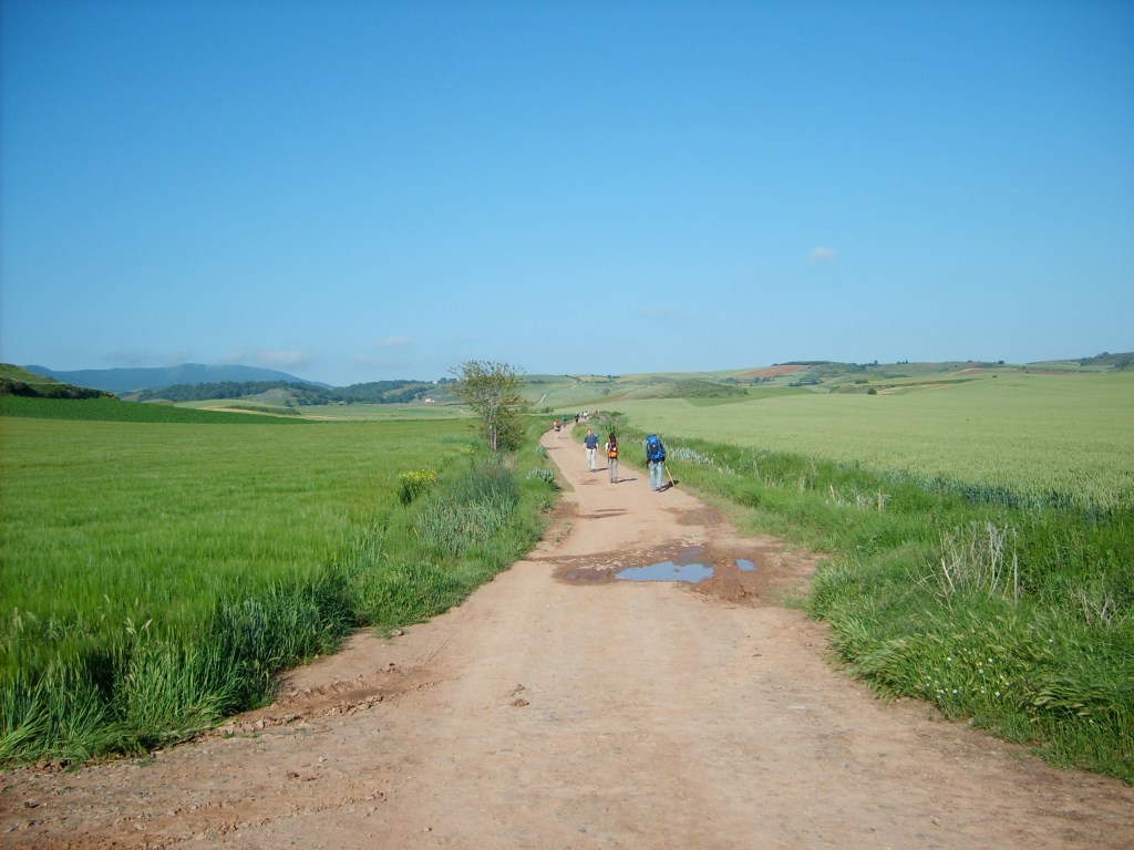 Nach einer Woche auf dem „Camino de Santiago“ scheint der Körper sich in der Tat so langsam an die steinigen Anforderungen des Tages zu gewöhnen. Leichtere Ermüdungserscheinungen werden regelmäßig mit Lachsalven behandelt und führen alsbald zur Besserung des Gesamtzustandes. Daneben bekämpfen wir „reizende“ Stiche in unseren stählernen Kniegelenken selbstredend auch mit autogenem Training. „Rechtes Knie, schmerzfrei! Linkes Knie, schmerzfrei!“ so, oder so ähnlich, lauten die Parolen, die zumeist Carsten stimmgewaltig in die Weinberge und die Kornfelder der Region Rioja ausruft. Das Verrückte an der Geschichte ist, dass die Wehwehchen im wahrsten Sinne des Wortes verschwinden. Die Kunst des Weges ist eben, den Alltag zu vergessen und zu laufen, laufen und noch einmal zu laufen!