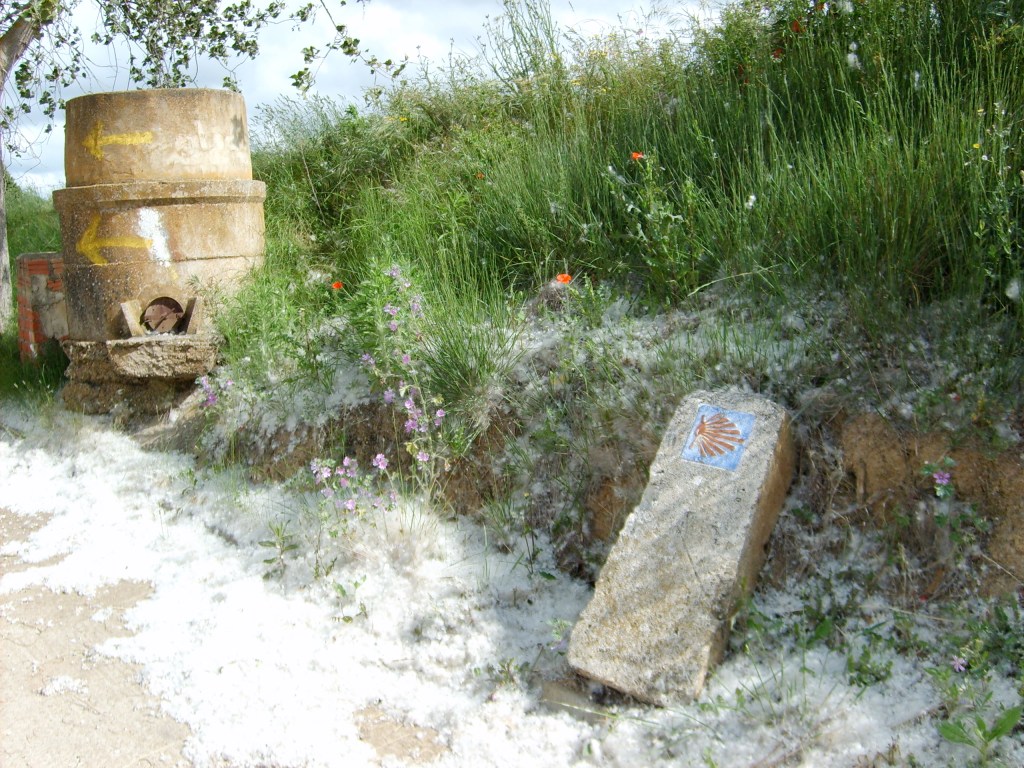 In der kahlen Landschaft sind die Pilger im Hochsommer erbarmungslos der Hitze ausgesetzt. Wir hingegen haben glücklicherweise noch keine extremen klimatischen Verhältnisse zu beklagen.