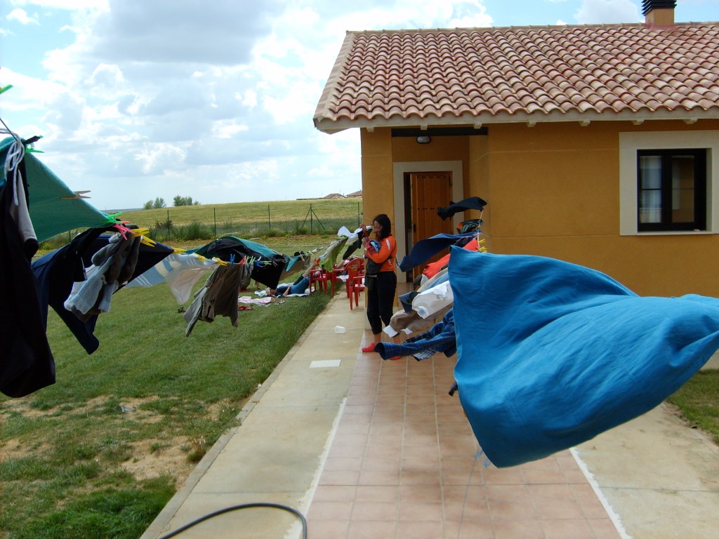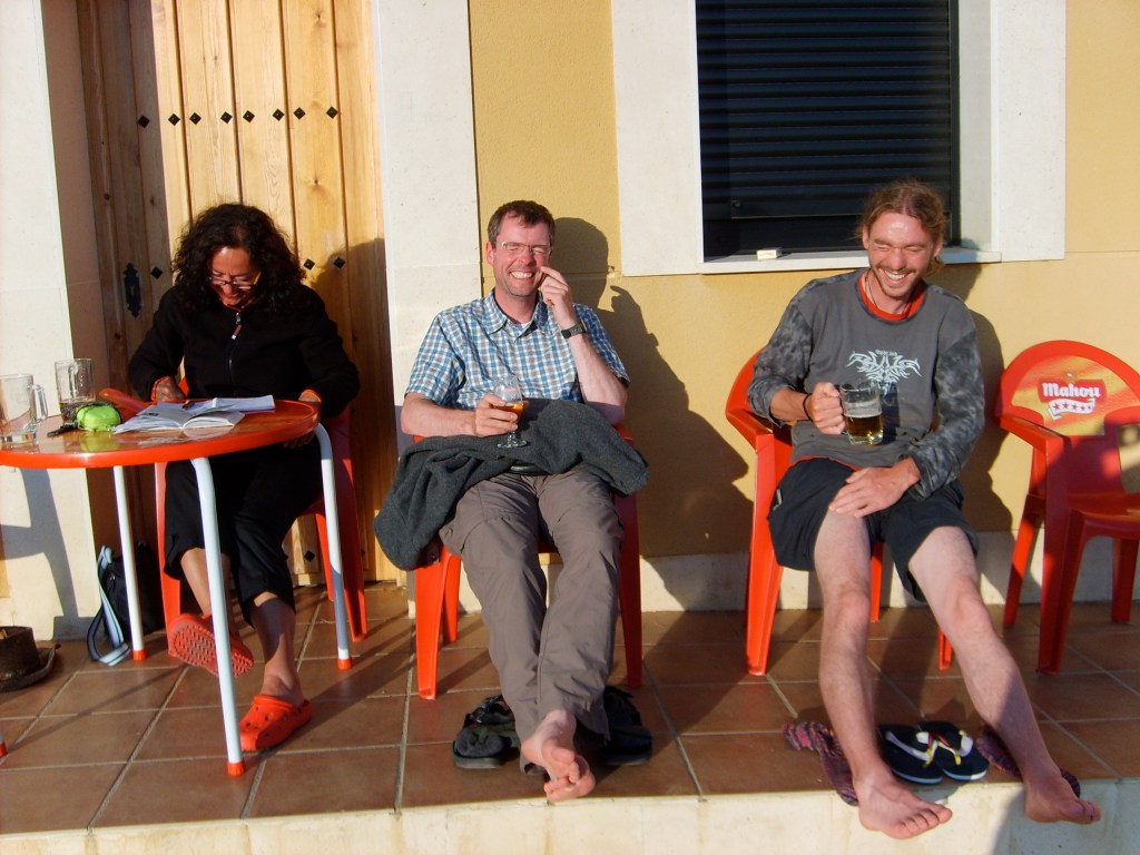 Nun sitzen wir frischgeduscht, 80 km vor Leon, auf einer Terrasse unserer Luxus-Herberge in Terradillos de los Templarios und übernachten erstmals auf dem Camino Francés in einem 4 Personen Zimmer.