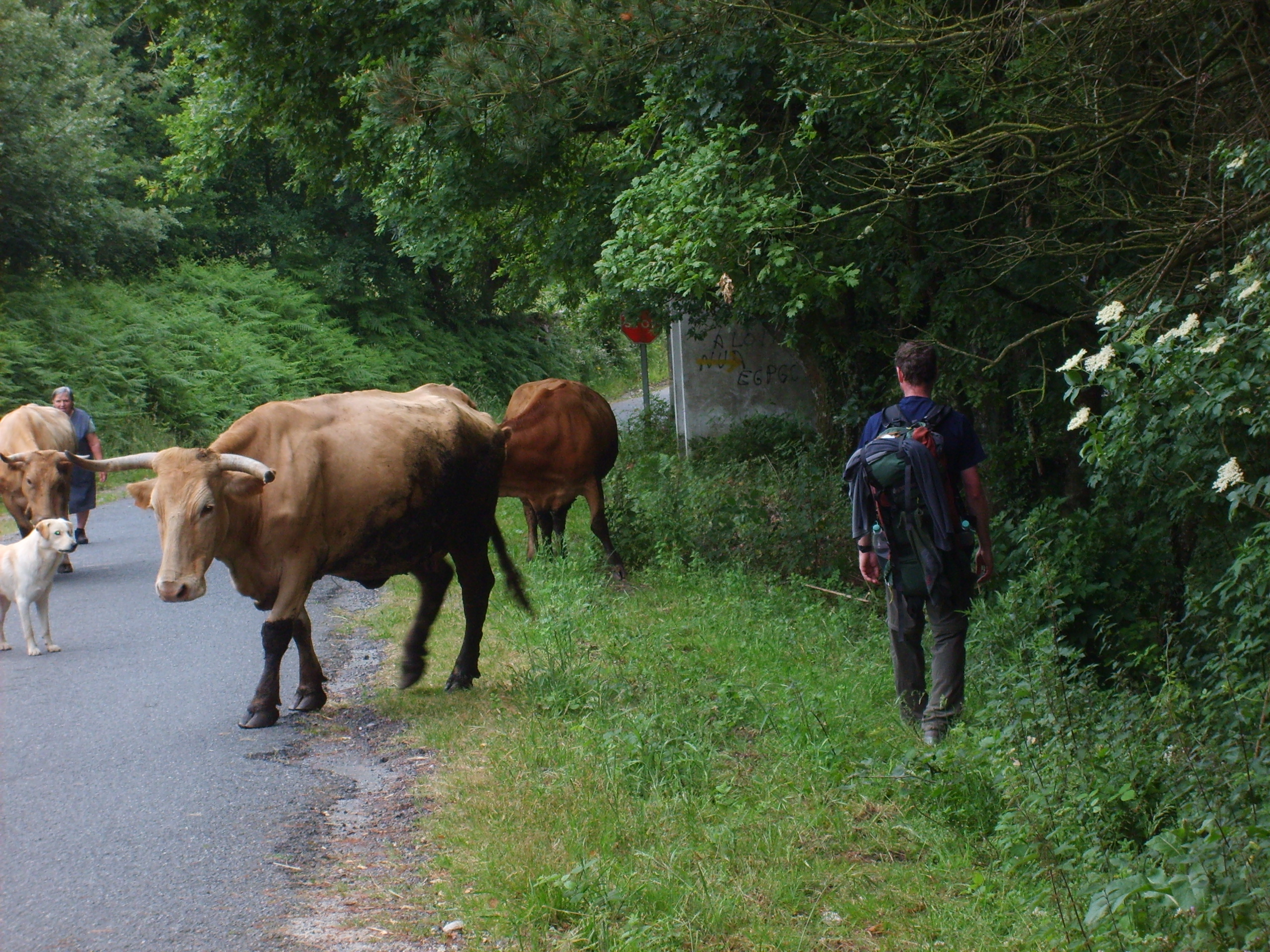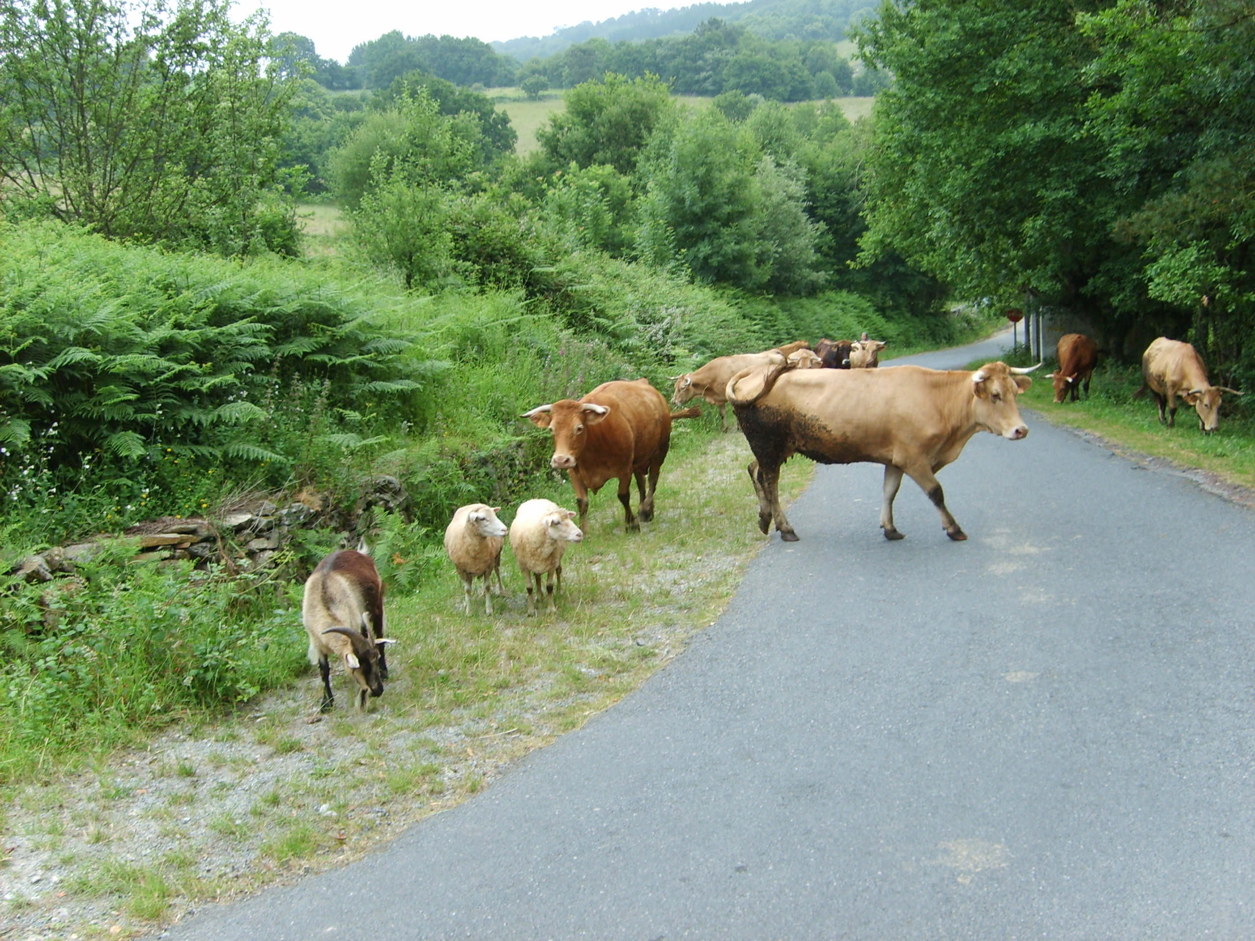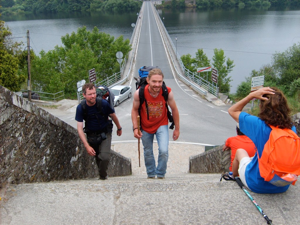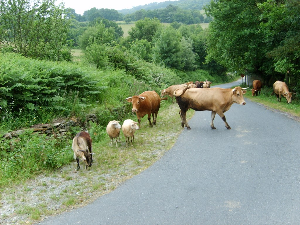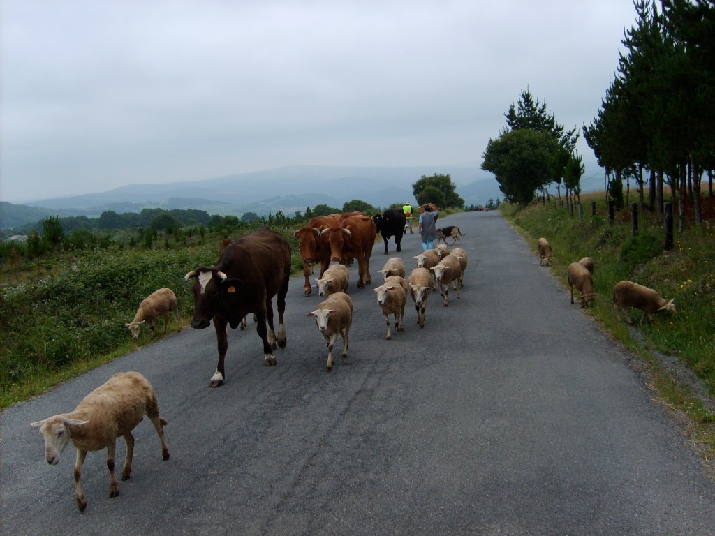 Der angekündigte Nebel hat sich bisher in Galicien glücklicherweise noch nicht so häufig gezeigt, dafür bevölkerten am Morgen aber unzählige Kühe, Schafe und Ziegen unseren Weg nach Portomarín. Das Laufen auf Asphalt durch die zahlreichen „Kuhdörfer“ in Galicien empfinden wir nach all den schönen und naturbelassenen Wegen der vergangenen Tage als deutlich ermüdender.
