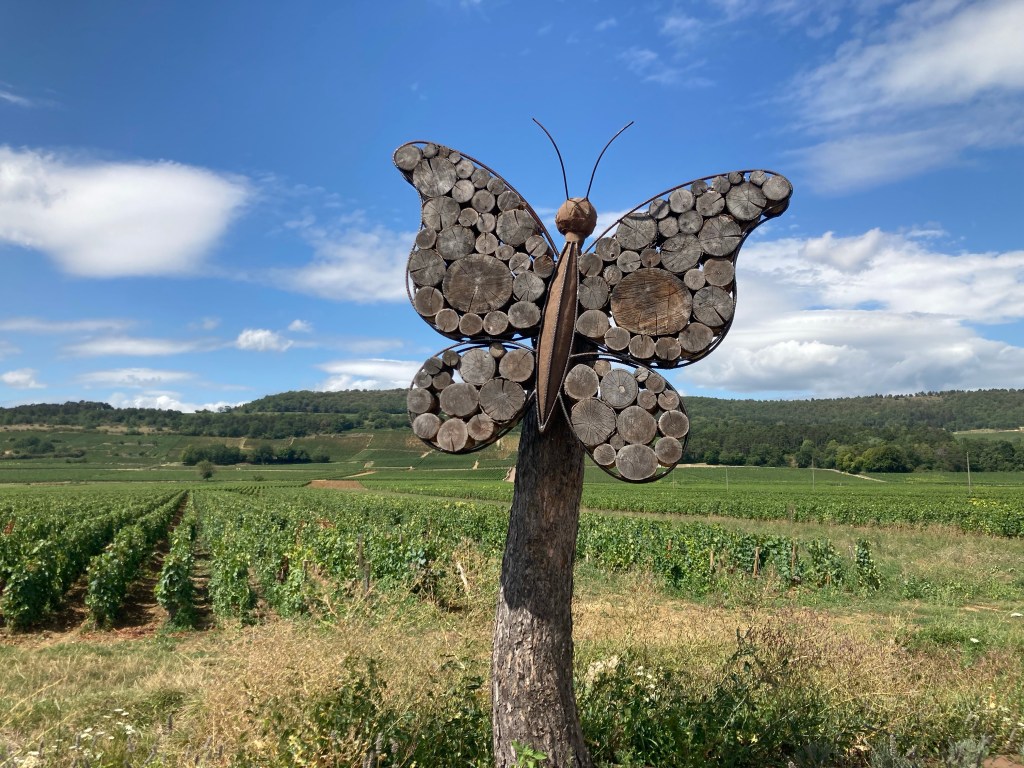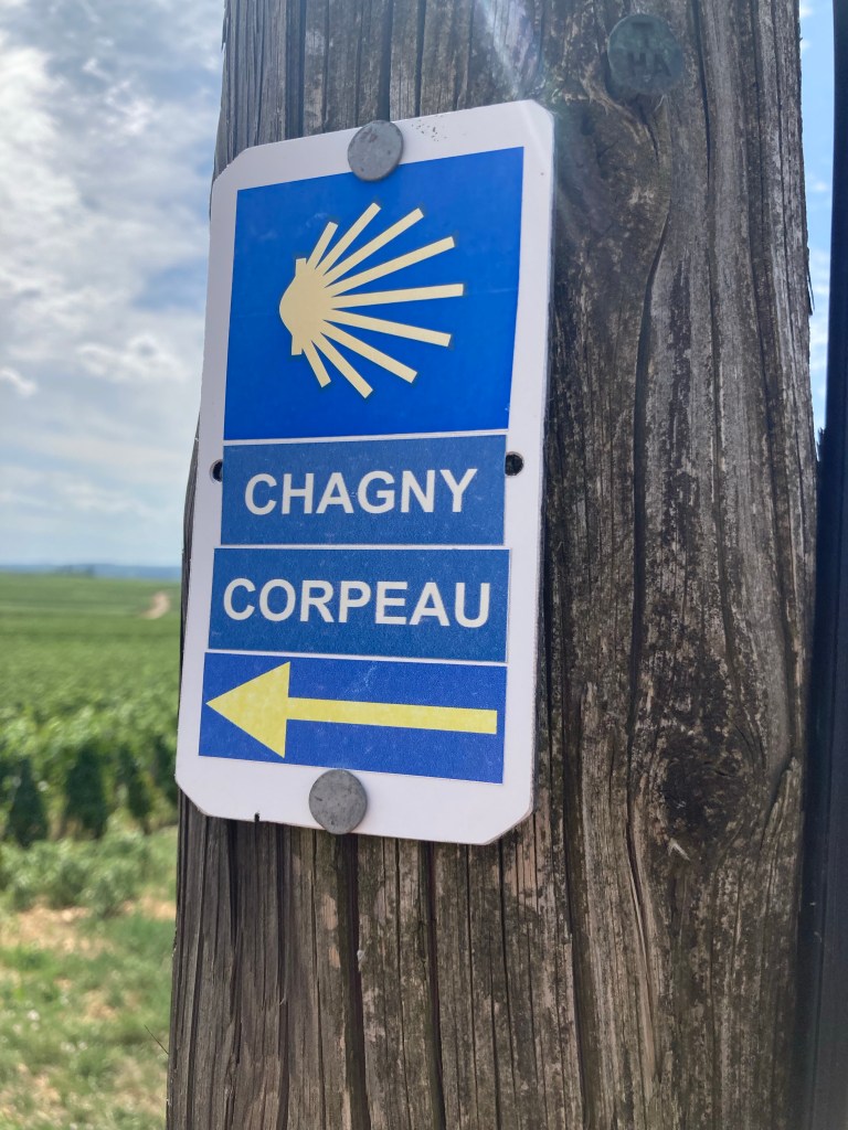 Der heutige Weg schlängelte sich übrigens erwarteterweise auf 22 Kilometern durch diverse Weinberge des Burgunds und hatte wenige echte Höhepunkte. Der allgegenwärtige Asphaltboden in den Weinbergen brachte viele Fahrradtouristen und einen traditionell lederhuttragenden Fußpilger ins heutige Etappenziel Chagny.