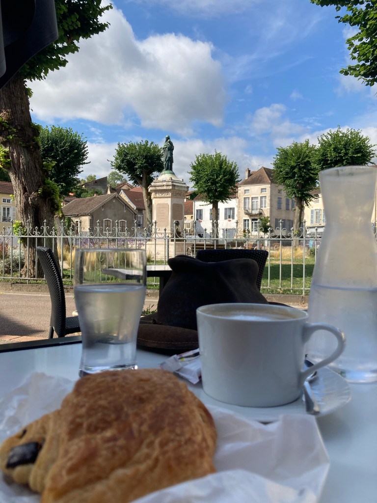 Da es neben dem regionalen Glas Rotwein 🍷 aus der Bourgogne auch noch einen weinhaltigen Aperitiv und zum Abschluss des stärkenden Essens einen hochprozentigen Digestiv (Marillenschnaps) gab, der nach Daniels Meinung zur schonenenden Auflockerung meiner verspannten Muskulatur beiträgt.
