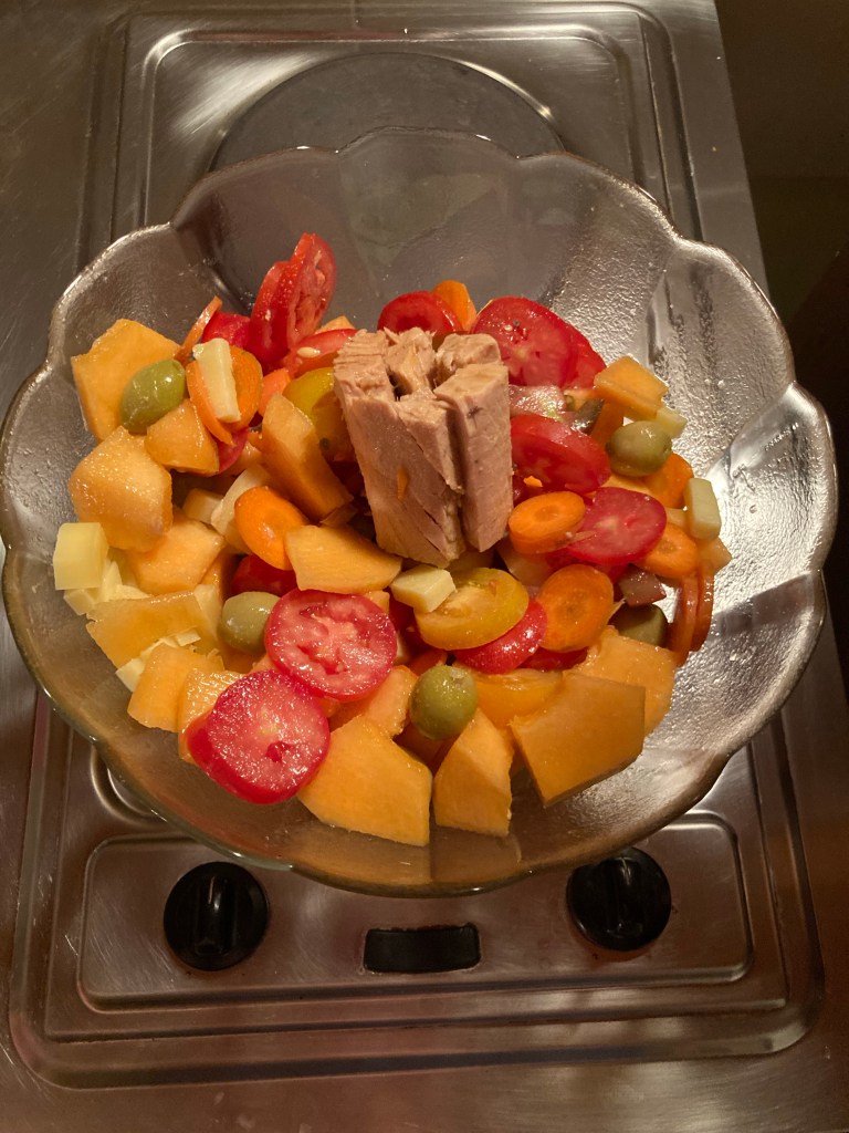 (Anmerkung der Redaktion: Melone, im Salat enthalten, war vorher auf dem Bild nicht zu sehen, wir bitten das Versehen zu entschuldigen)
